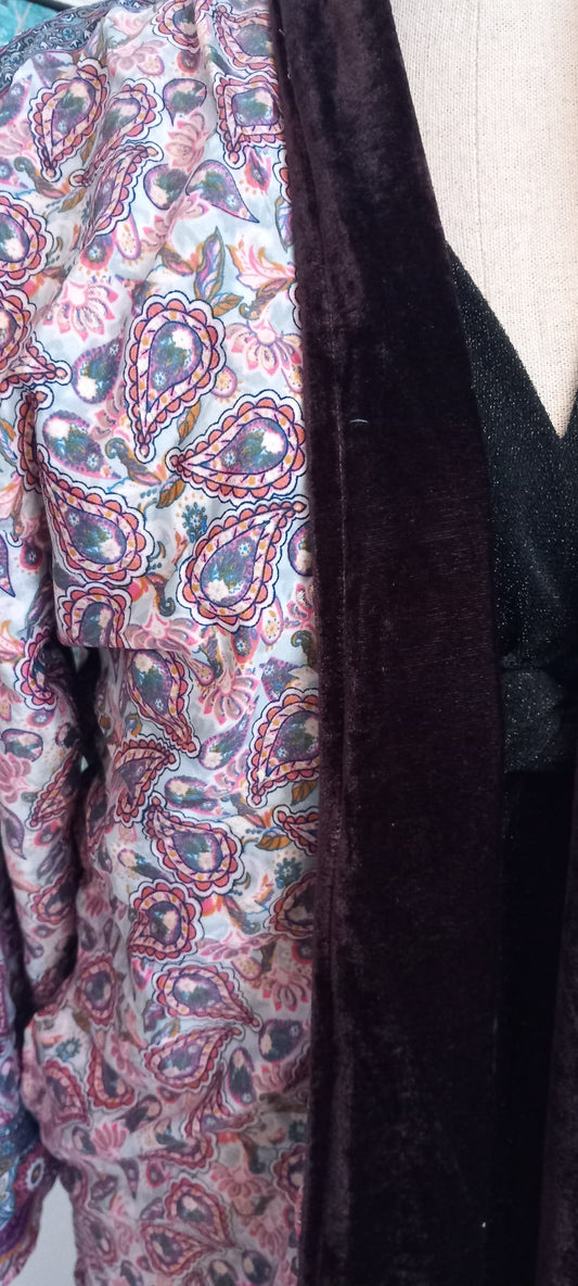 Lang og eksklusiv håndlavet silke/velour Kimono