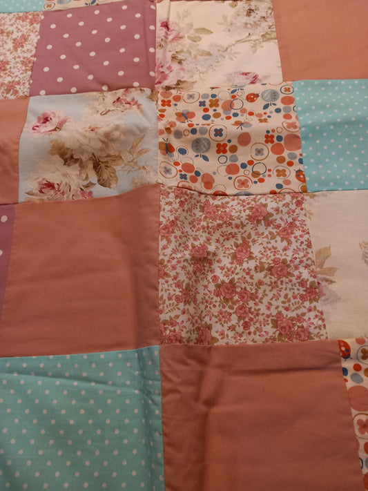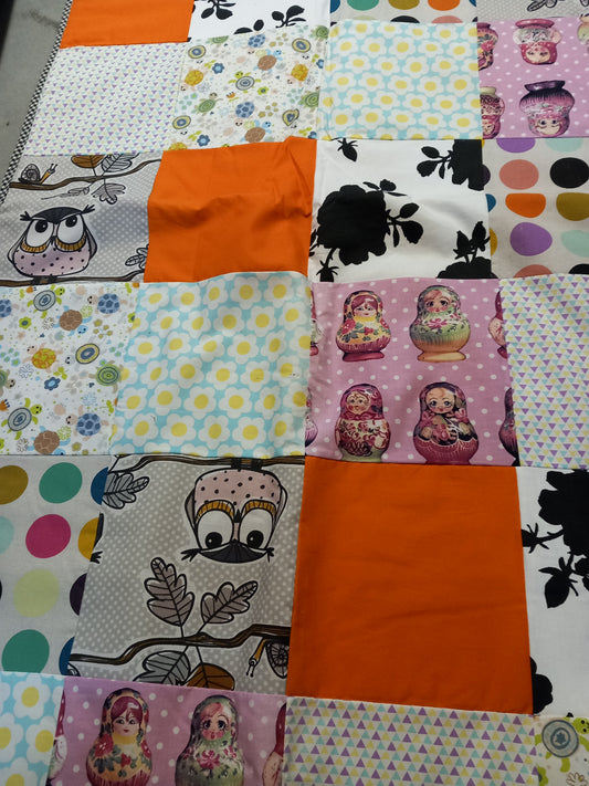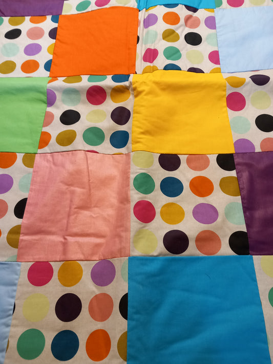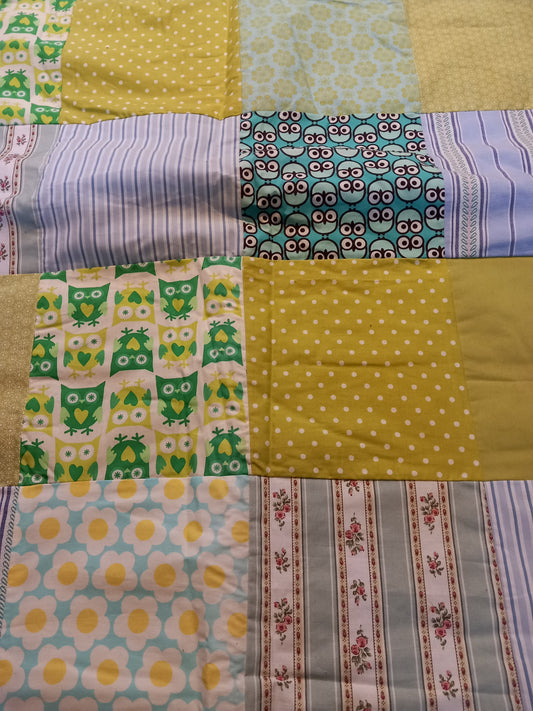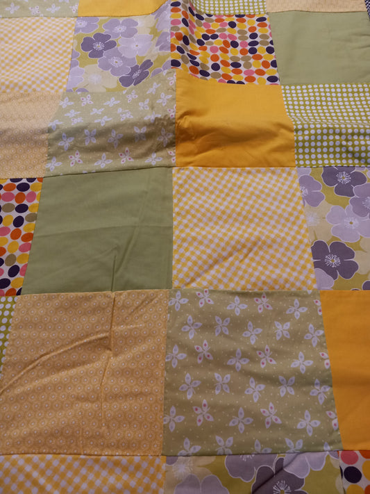 Legetæppe/sengetæppe, gul/grøn/pink