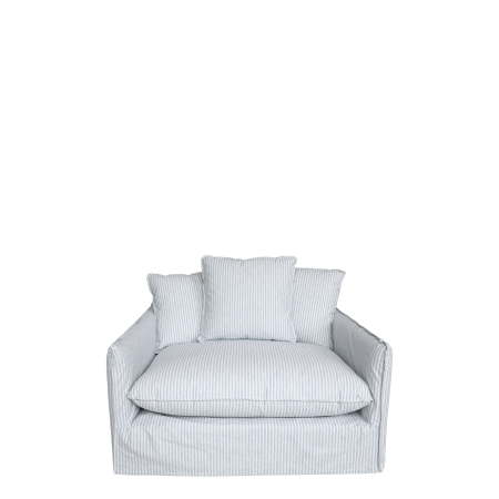 Malo Stol i hør m. 3 puder, sky blue og creme striber