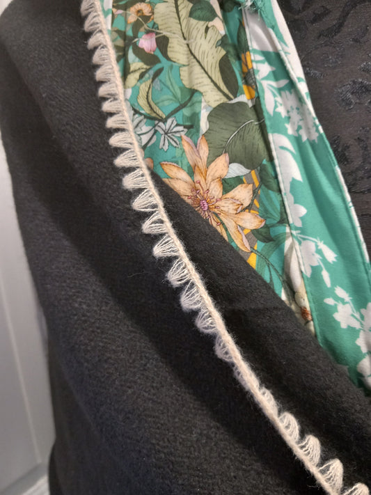 Sjal sort med hvid kant