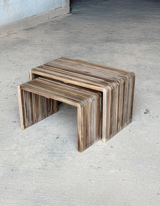 Sæt af 2 Borde af Genanvendt Teaktræ