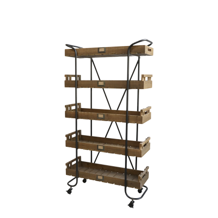 Købmandsdisk på hjul m. 20 skuffer, natur