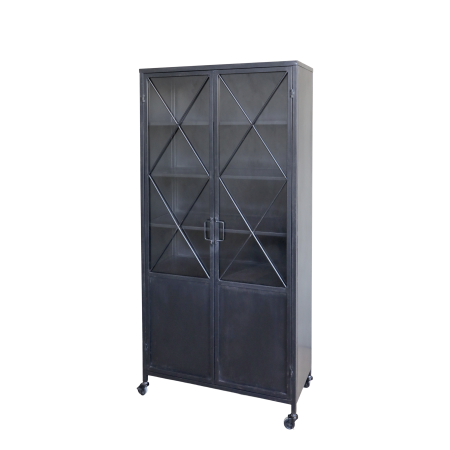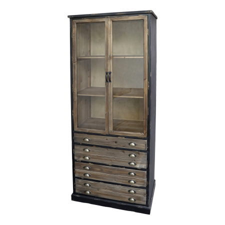 Vitrineskab m. 2 glaslåger og 4 skuffer, antique sort