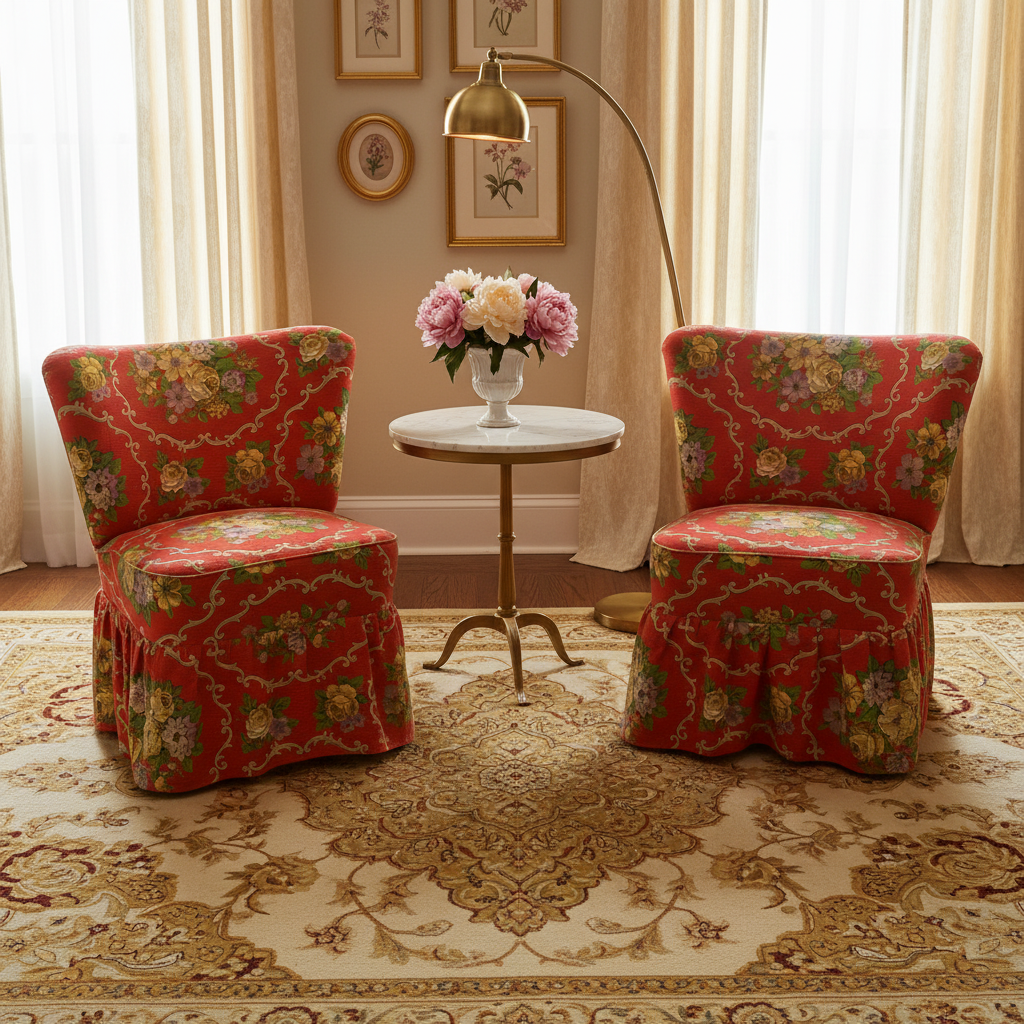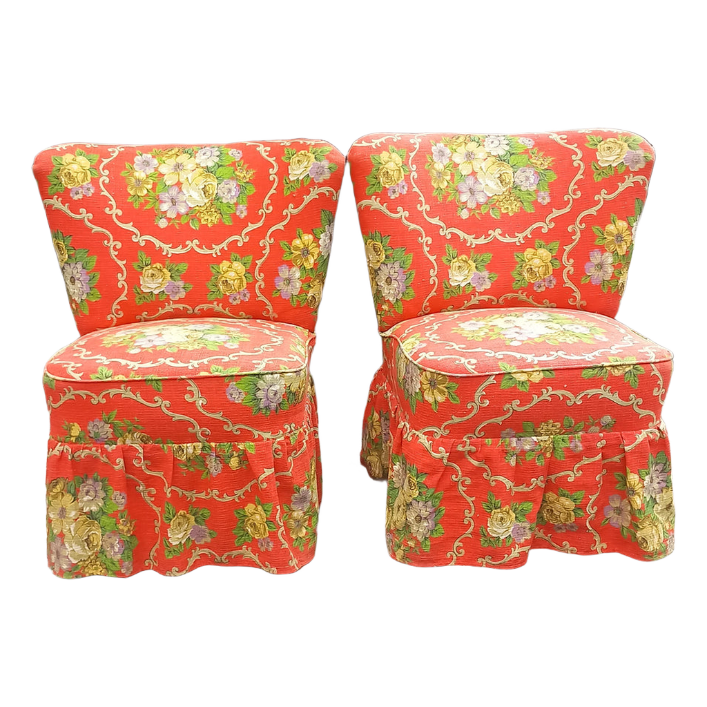 2 stk lænestole, rød med blomster