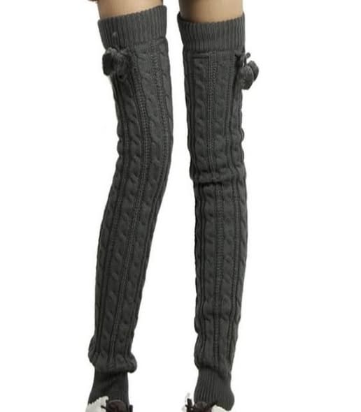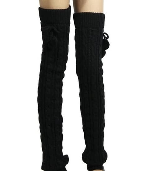Super fede benvarmer i strik med pompomer på.