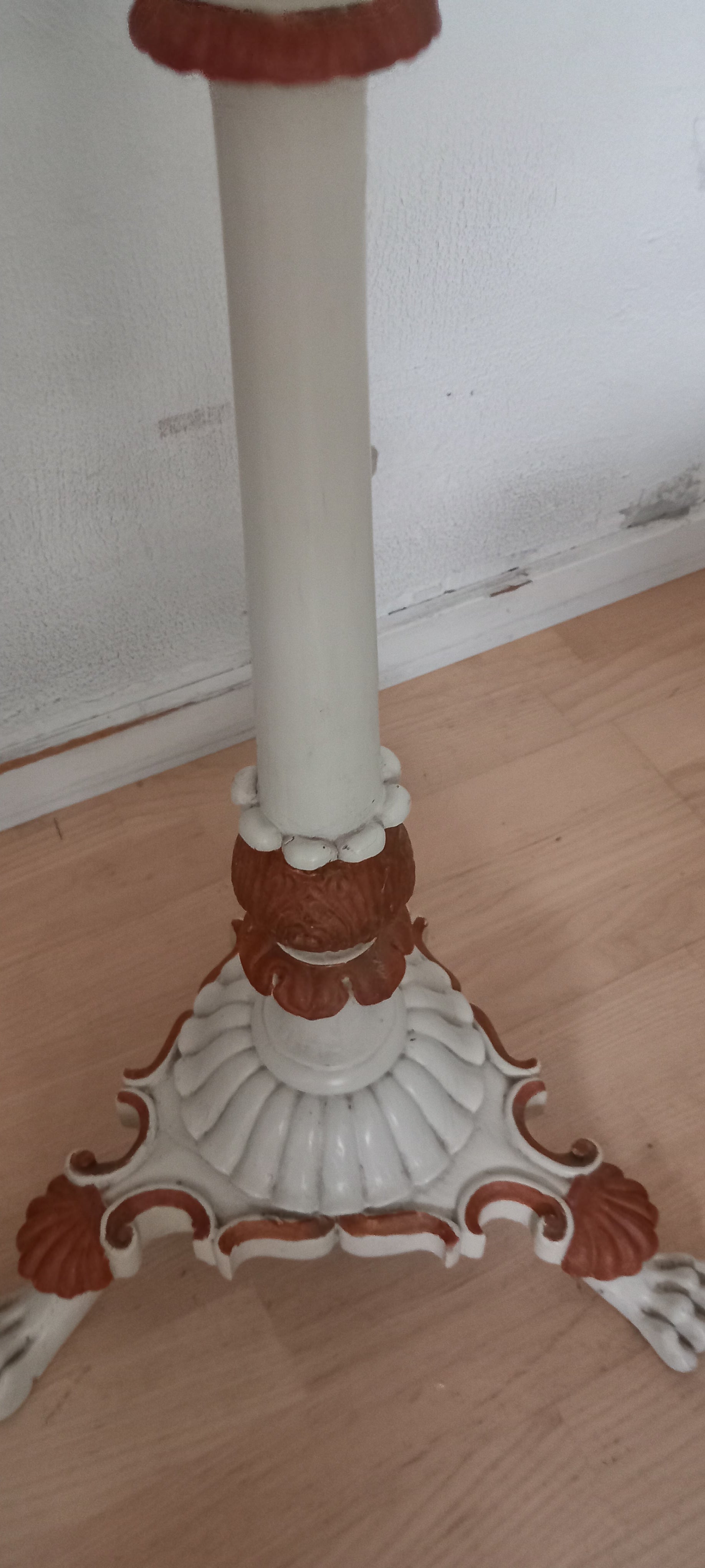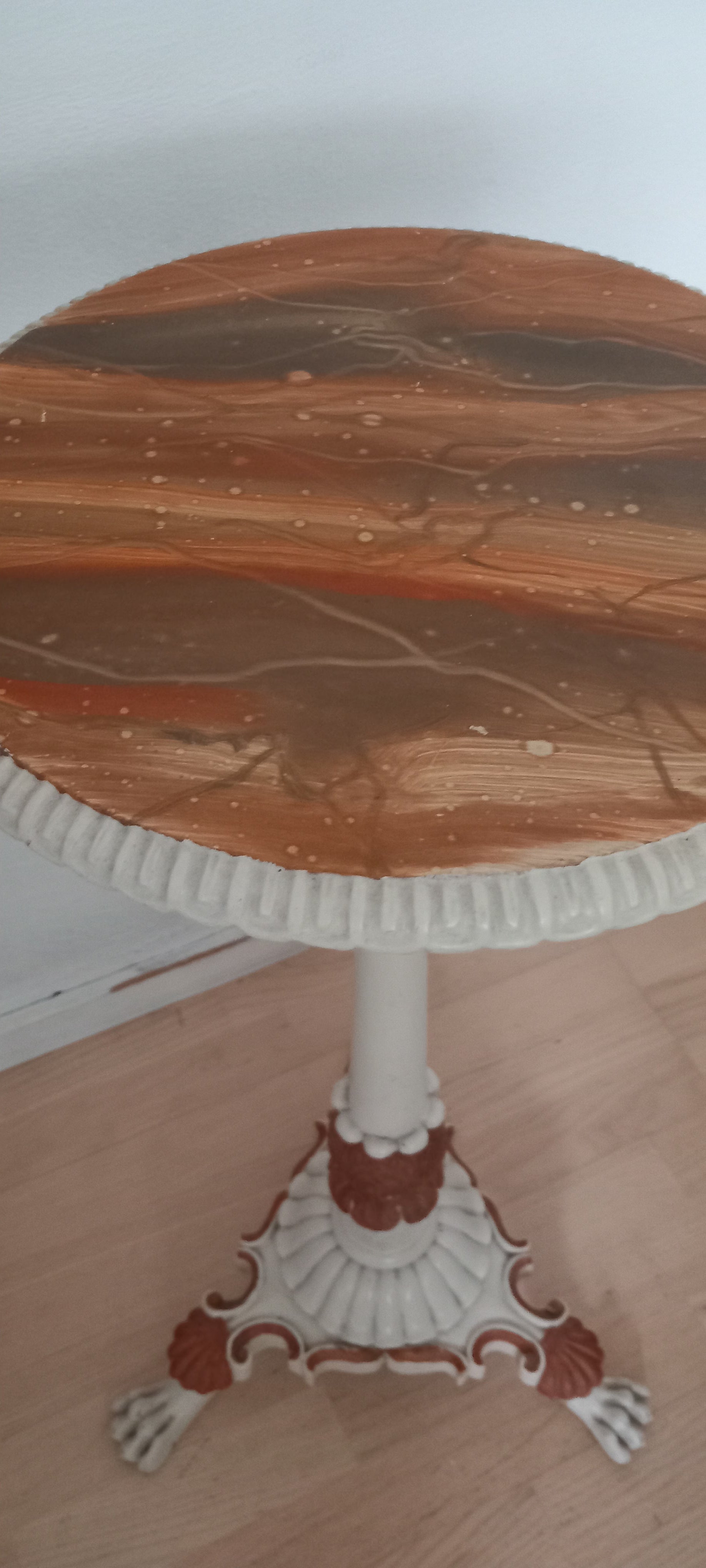 Så smuk en gl blomsteropsats i træ. Malet bordplade så det ligner marmor.