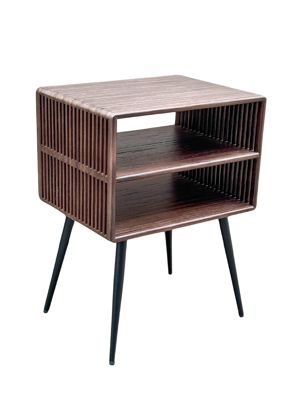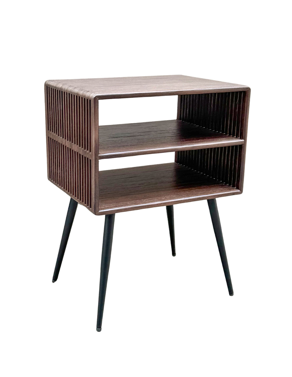 Dette smukke side- eller sengebord i vores nye rustbrune finish er lavet af genanvendt teaktræ. Bordet har en hylde og sorte lette jernben. Designet forener et let og tidløst æstetisk udtryk med den rustikke charme fra ældet træ, som tidens tand har givet en karakterfuld patina. Brug sidebordet i soveværelset som sengebord eller i som sidebord til at vise dine favoritting.