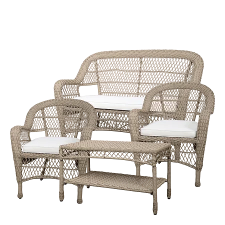 Havesæt i flet m. bord, sofa og 2 stole m. hynder