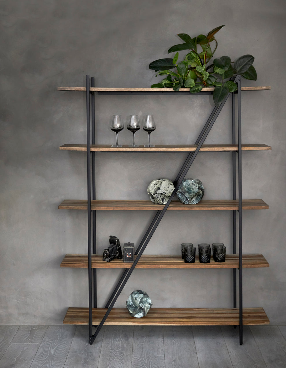 Giv dit hjem et løft med denne smukke høje bogreol fremstillet af genanvendt teaktræ. Med fem rummelige hylder kombinerer den den varme, rustikke charme fra ældet teak i en brun finish med det tidløse design af en let sort jernramme. Bogreolen er i let design og kan nemt foldes sammen, hvilket gør den utroligt fleksibel og let at tilpasse til flere formål – uanset om det er til at fremvise dekorative genstande eller organisere ting. Perfekt til både stuen, kontoret eller andre rum, hvor den tilføjer karakter og funktionalitet.
