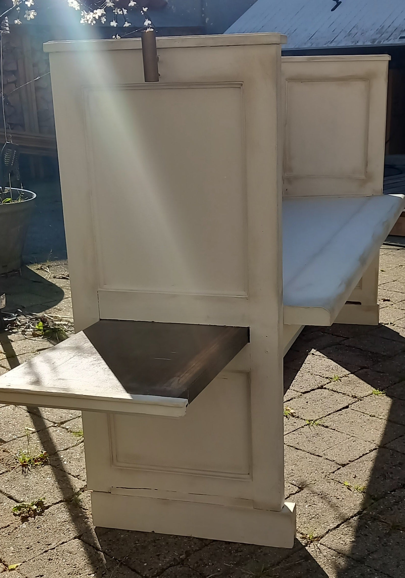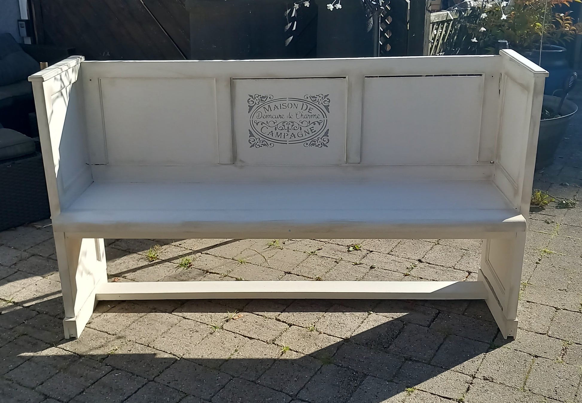 Mål: h. 88 cm , l. 153 incl lysholder, og 190 cm med ekstra sæde trukket ud. D. 46 cm.