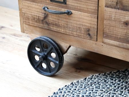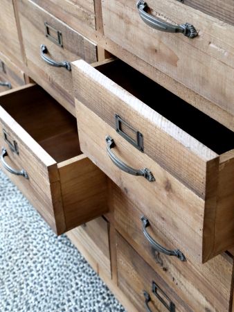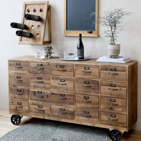 Købmandsdisk på hjul m. 20 skuffer, natur