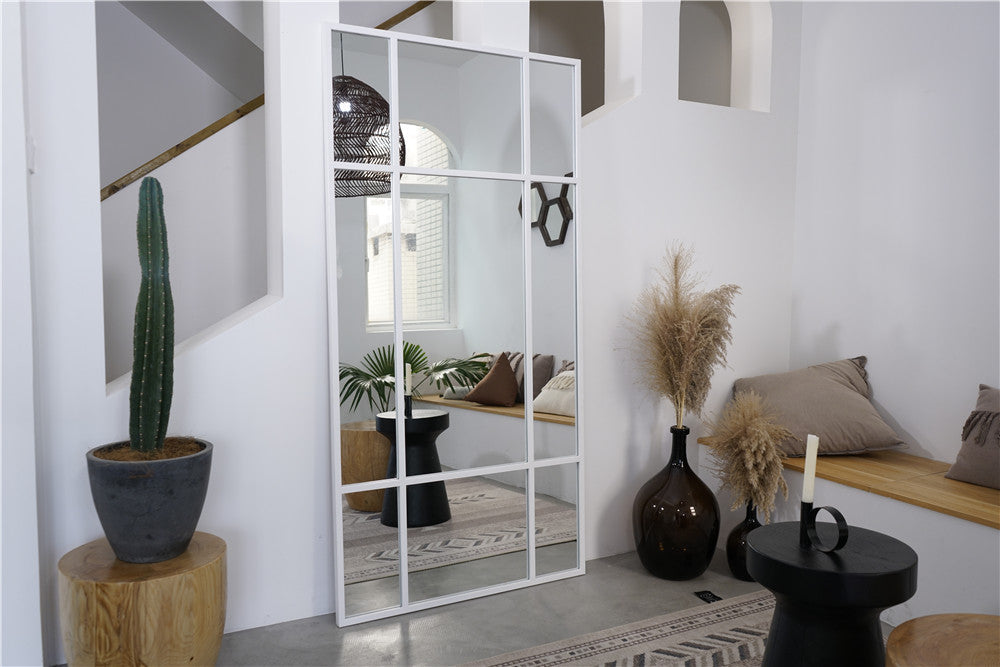 Tilføj et moderne og industrielt udtryk til dit hjem med dette elegante New Yorker spejl i målene 180x90 cm. Spejlet har det karakteristiske metalramme-look, inspireret af de klassiske New Yorker-vinduer, og passer perfekt ind i både entré, soveværelse eller stue.