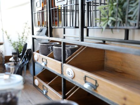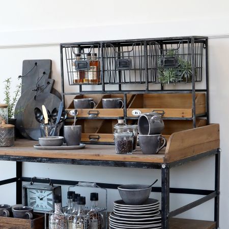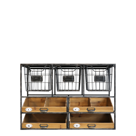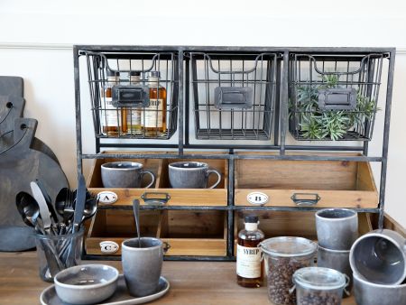 Vægreol m. skuffer, antique kul