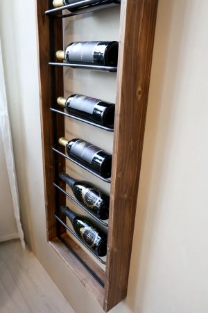 Afstand imellem hylder er 15 cm, Passer til 8 flasker.
