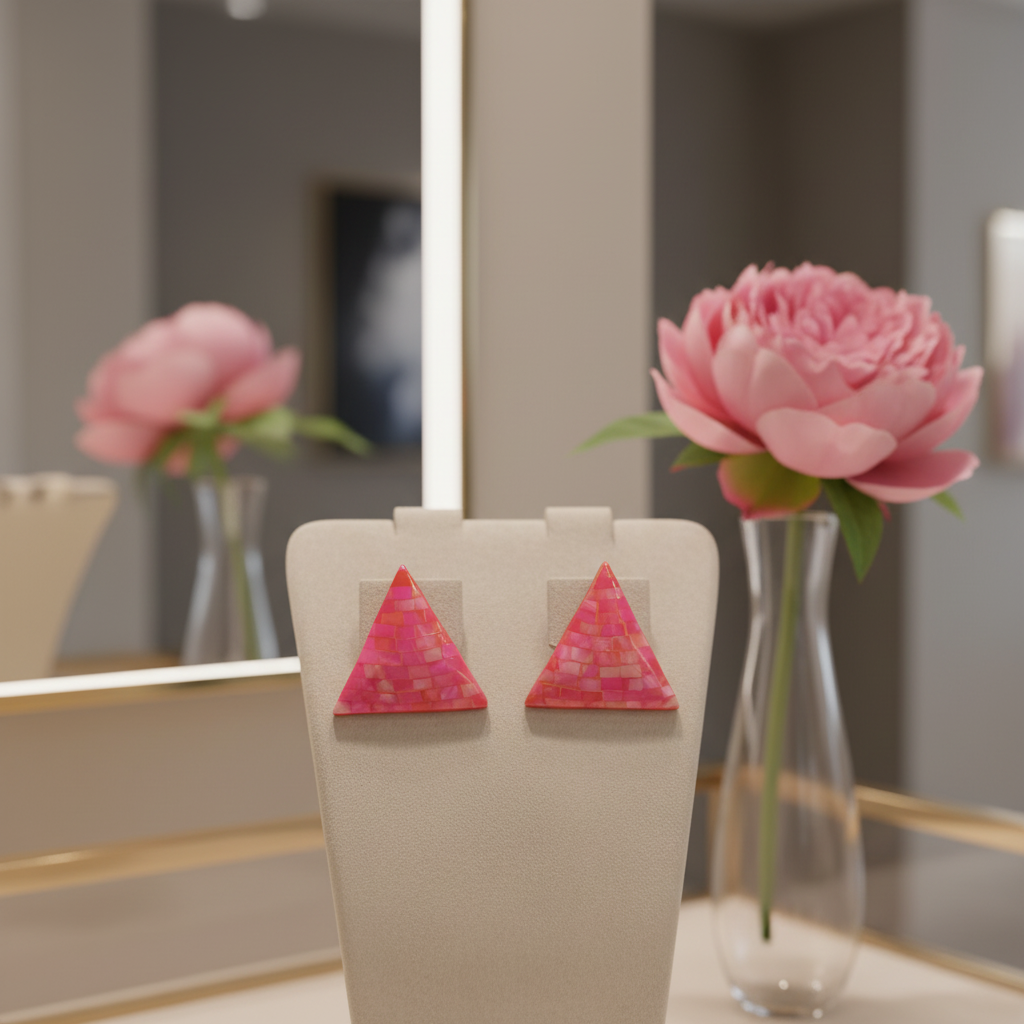 Øreclips, pink meleret trekant
